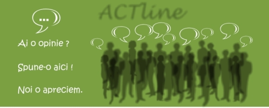 Inainte de toate ne propunem sa fim o comunitate onesta si responsabila. Dorim sa ne implicam in activitati care ne pot influenta pozitiv stilul de viata. Ne pasa daca produsele sau serviciile de zi cu zi sunt concepute sa ne satisfaca cerintele. Vrem sa fim corect informati si sa informam la randul nostru despre nevoile noastre. ACTline este vocea cu care ne exprimam deschis parerea personala despre produsele create de altii pentru noi fara a fi intrebati ce gandim.